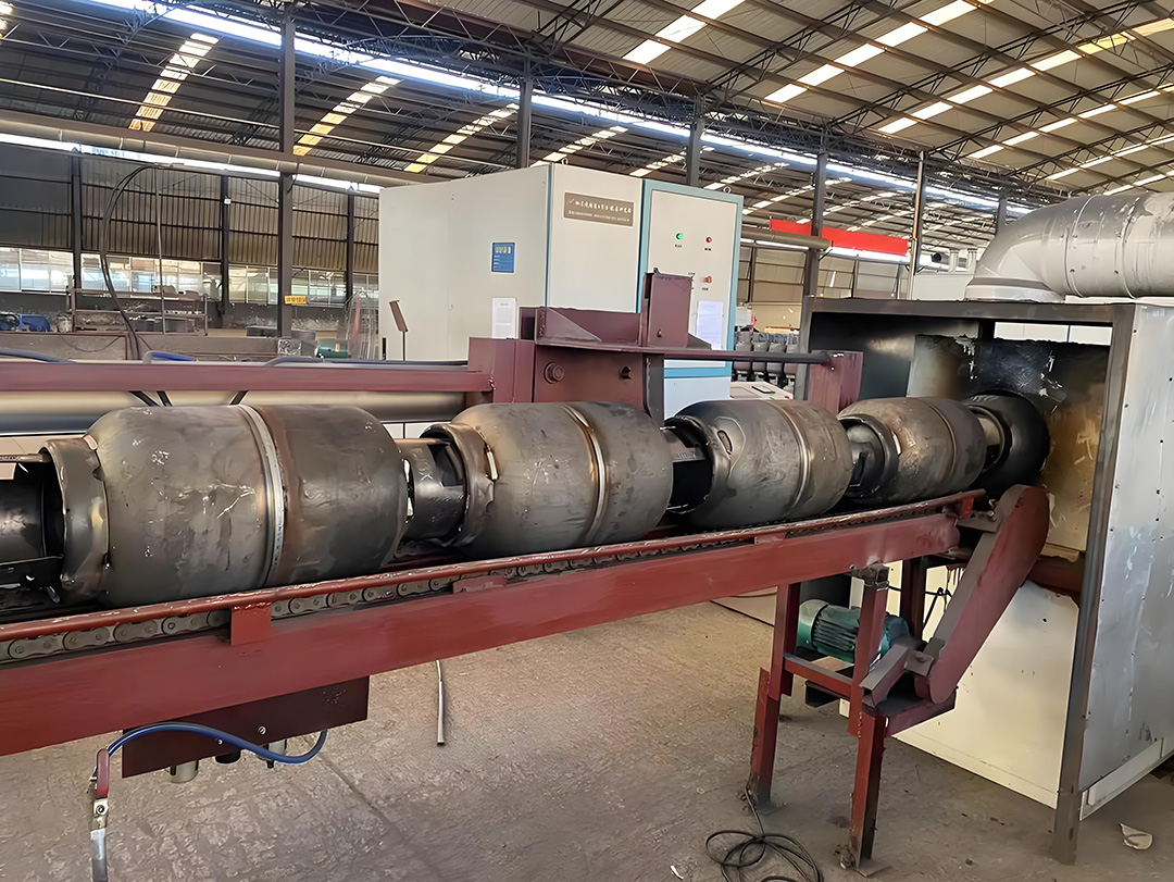 LPG Cylinder Surface Treatment Line: Shot Blasting, Zinc Metallization and Liquid Painting / Powder Coating